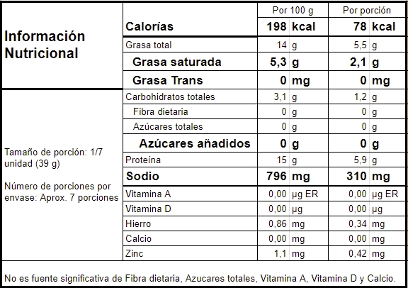 Elaborada artesanalmente a base de carne de cerdo, con textura y sabor suave, notas de pimienta blanca, cardamomo y jengibre.